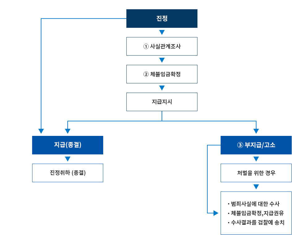 - ์ง์ ์ ๊ธฐ: ๊ณ ์ฉ๋ ธ๋๋ถ์ ์๊ธ์ฒด๋ถ ์ฌ์ค์ ์ ๊ณ ํ๊ณ , ์ฒด๋ถ์๊ธ ์ง๊ธ์ ์ํ ์กฐ์ฌ๋ฅผ ์์ฒญํ ์ ์์ต๋๋ค.