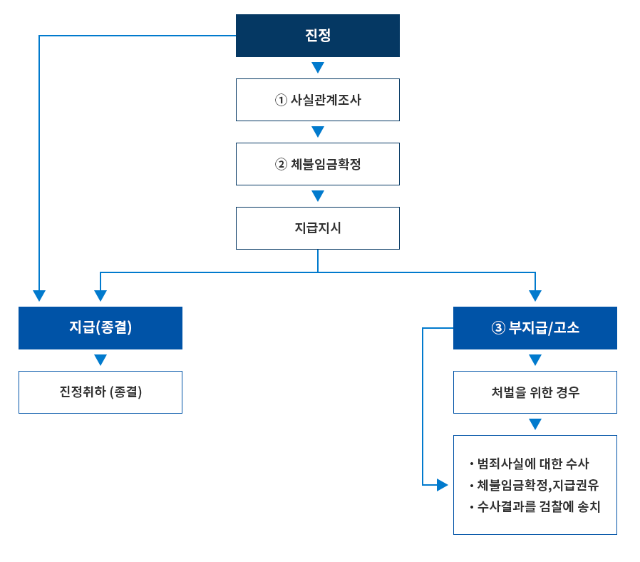 - ์ง์ : ์๊ธ์ฒด๋ถ ํด๊ฒฐ์ ์ํด ๊ณ ์ฉ๋ ธ๋๋ถ์ ๋์์ ์์ฒญํ๋ ์ ์ฐจ์ ๋๋ค. ๊ณ ์ฉ๋ ธ๋๋ถ๋ ์ฌ์ ์ฃผ์๊ฒ ์ฒด๋ถ์๊ธ ์ง๊ธ์ ๊ถ๊ณ ํ๊ณ , ํ์ํ ๊ฒฝ์ฐ ์์ ์กฐ์น๋ฅผ ๋ช ๋ นํ ์ ์์ต๋๋ค.