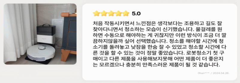 ๋ก๋ณต๋ฝ S8 MaxV Ultra๋ ๊ฐ๋ ฅํ ํก์ ๋ ฅ, ๋ฐ์ด๋ ์ฅ์ ๋ฌผ๊ณผ ํํผ ๋ฅ๋ ฅ, ํธ๋ฆฌํ ์๋ ๋จผ์งํต ๋น์ฐ๊ธฐ ๊ธฐ๋ฅ, ๋๋ํ ๋ฌผ๊ฑธ๋ ๊ธฐ๋ฅ ๋ฑ ๋ค์ํ ์ฅ์ ์ ๊ฐ์ถ ์ต์ฒจ๋จ ๋ก๋ด์ฒญ์๊ธฐ์ ๋๋ค. ํ์ง๋ง ๊ฐ๊ฒฉ์ด ๋ค์ ๋๊ณ ์์์ด ํด ์ ์๋ค๋ ๋จ์ ๋ ์กด์ฌํฉ๋๋ค. ์ด๋ฒ ์ ์ ํ ๋ชจ๋ธ์ ์ด๋ฌ ํ ๋จ์ ์ ๊ฐ์ ํด์ ๋ค์ ์ถ์๋์์ต๋๋ค. ํ์ง๋ง ๊ฐ๊ฒฉ ๋ถ๋ถ์์๋ ํด๊ฒฐ์ ๋ชปํ ๋ถ๋ถ์ผ๋ก ๋ณด์ ๋๋ค. ์ ๋ชจ๋ธ์ ๊ตฌ์ ํ ๋ถ๋ค ๊ณ ๊ฐํ๊ธฐ ๋ณด๋ฉด ๋๋ถ๋ถ ๋ง์กฑ์ค๋ฝ๋ค๋ ํ๊ธฐ๋ค์ด ๋ง์ต๋๋ค. ๋ค๋ง ๋ฐ๋ฅ์ ๋ก๋ด์ฒญ์๊ธฐ๊ฐ ๋์๋ค๋๋งํ ์ฅ์ ๋ฌผ์ด ์์ด์ผ ์ฌ์ฉ ๊ฐ๋ฅ ํ๋ค๋ ์๊ฐ์ ๋๋ค.