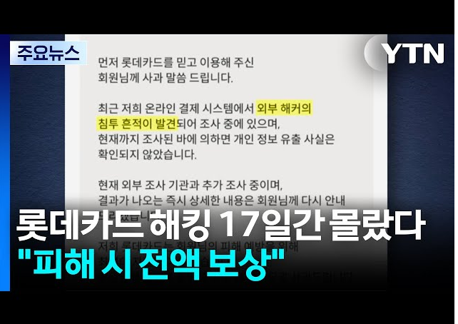 ์ด๋ฒ ํดํน ์ฌ๊ฑด์ ๋จ์ํ ๋ถ์๊ฐ์ ๋์ด ์ง์ ์ ์ธ ๊ธ์ ์ ํผํด๋ก ์ด์ด์ง ์ ์๋ค๋ ์ ์์ ๊ฒฝ๊ฐ์ฌ์ ๊ฐ์ง ํ์๊ฐ ์์ต๋๋ค. ๋กฏ๋ฐ์นด๋๋ ๊ณต์์ ์ผ๋ก ๊ฐ์ธ ์ ๋ณด ์ ์ถ์ ์๋ค๊ณ ๋ฐํํ์ง๋ง, ํน์๋ผ๋ ํดํน์ผ๋ก ์ธํด ๋ถ์ ์ฌ์ฉ์ด ๋ฐ์ํ ๊ฐ๋ฅ์ฑ์ ์์ ํ ๋ฐฐ์ ํ ์ ์์ต๋๋ค. ๋ฐ๋ผ์ ์์ ์ ์นด๋ ์ฌ์ฉ ๋ด์ญ์ ์ฃผ๊ธฐ์ ์ผ๋ก ์ ๊ฒํ๊ณ , ํผํด๊ฐ ์์ฌ๋ ๊ฒฝ์ฐ ์ง์ฒด ์์ด ์ ๊ณ ํ์ฌ ์ถ๊ฐ์ ์ธ ์์ค์ ๋ง๋ ๊ฒ์ด ๋ฌด์๋ณด๋ค ์ค์ํฉ๋๋ค.