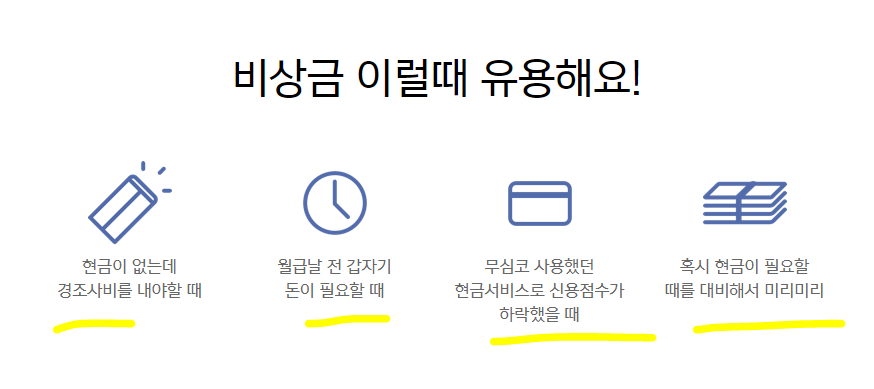 ์นด์นด์ค๋ฑ ํฌ๋ ๋น์๊ธ๋์ถ์ ์ ์ฒญ ์ ์ฐจ๊ฐ ๊ฐ๋จํ๊ณ ์ ์ํ ๋์ถ ์คํ์ด ๊ฐ๋ฅํ ์ฅ์ ์ด ์์ต๋๋ค.