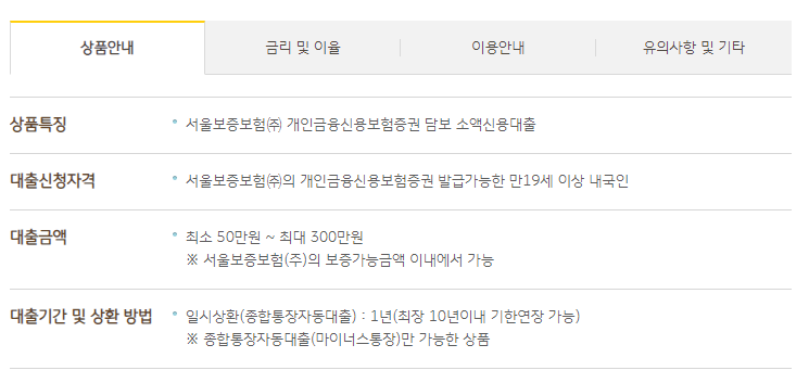 - ๋์ถ ๊ธ๋ฆฌ: ์ ์ฉ๋ฑ๊ธ์ ๋ฐ๋ผ ๋ค๋ฅด๋ฉฐ, ์ฐ 3%์์ 15% ์ฌ์ด์ ๋๋ค. ์ ํํ ๊ธ๋ฆฌ๋ ๋์ถ ์ ์ฒญ ์ ํ์ธํ ์ ์์ต๋๋ค.