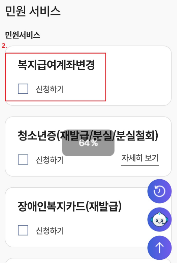 - λ€μν μλΉμ€ λͺ©λ‘ μ€ [볡μ§κΈμ¬κ³μ’λ³κ²½]μ μ²΄ν¬ νμλ₯Ό ν ν, [λ€μ λ¨κ³] λ²νΌμ ν΄λ¦νμ¬ μ§νν©λλ€.