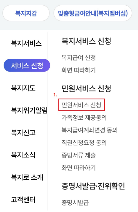 - μ΄μ΄μ λνλλ νμ λ©λ΄ μ€ [λ―ΌμμλΉμ€ μ μ²]μ μ νν©λλ€.