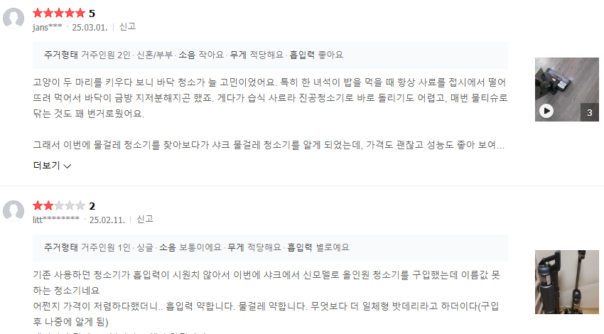 - "๊ณ ์์ด ํธ ๋๋ฌธ์ ๊ณ ๋ฏผ์ด์๋๋ฐ, ์คํฌ ์ฒญ์๊ธฐ ๋๋ถ์ ๊นจ๋ํ๊ฒ ์ฒญ์ํ ์ ์์ด์ ๋๋ฌด ์ข์์."