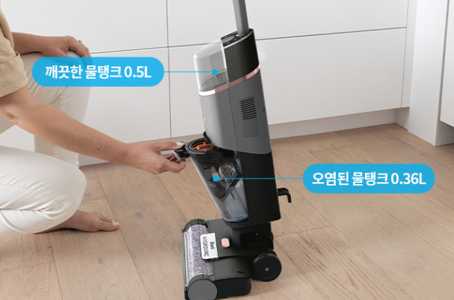 - ๋์คํด๋ฆฐ(DuoClean) ๊ธฐ์ : ๋ ๊ฐ์ ๋ธ๋ฌ์ ๋กค๋ฌ๊ฐ ํจ๊ป ์๋ํ์ฌ ํฐ ๋จผ์ง์ ๋ฏธ์ธ๋จผ์ง๋ฅผ ๋์์ ์ ๊ฑฐํฉ๋๋ค. ํนํ, ๋ง๋ฃป๋ฐ๋ฅ๊ณผ ์นดํซ ๋ชจ๋์์ ๋ฐ์ด๋ ์ฑ๋ฅ์ ๋ฐํํฉ๋๋ค.