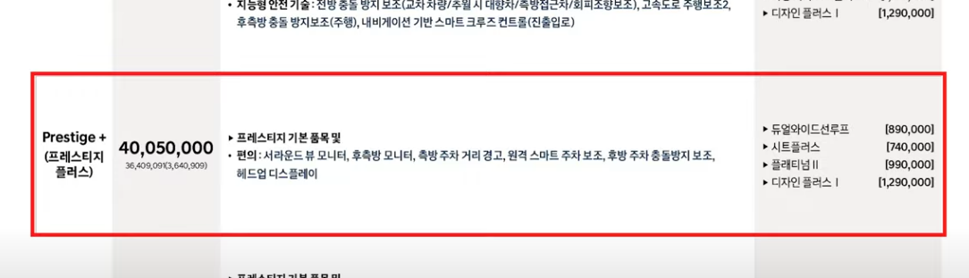 ๊ธฐ๋ณธ ์ต์ : ์๋ผ์ด๋ ๋ทฐ ๋ชจ๋ํฐ, ํ์ธก๋ฐฉ ๋ชจ๋ํฐ, ์ธก๋ฐฉ ์ฃผ์ฐจ ๊ฑฐ๋ฆฌ ๊ฒฝ๊ณ , ์๊ฒฉ ์ค๋งํธ ์ฃผ์ฐจ ๋ณด์กฐ, ํ๋ฐฉ ์ฃผ์ฐจ ์ถฉ๋ ๋ฐฉ์ง ๋ณด์กฐ, ํค๋์ ๋์คํ๋ ์ด ๋ฑ ๊ณ ๊ธ ํธ์ ๊ธฐ๋ฅ์ด ๊ธฐ๋ณธ์ผ๋ก ์ ๊ณต๋ฉ๋๋ค.
