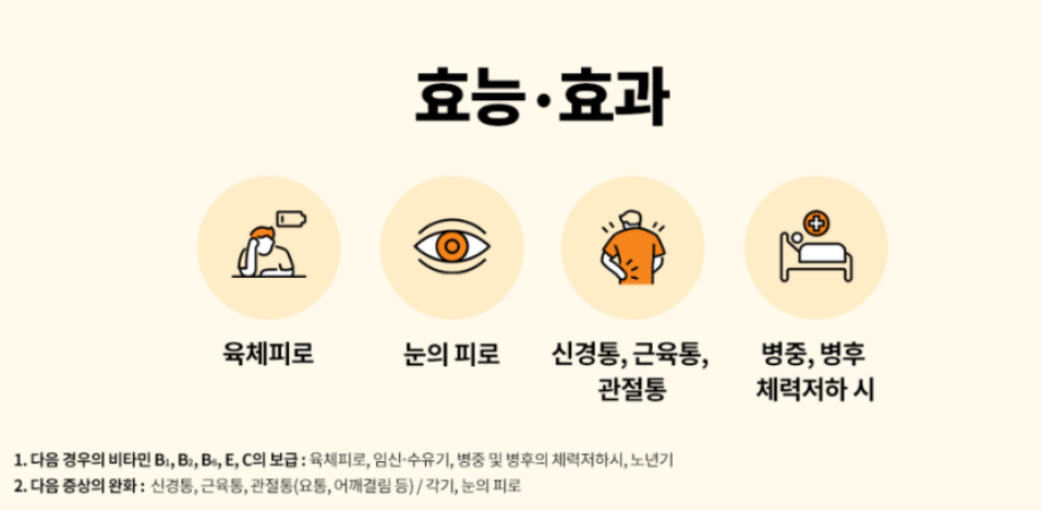 - ๊ฐ์ข ์ฆ์ ๊ฐ์ : ๋นํ๋ฏผ B1 ๋ถ์กฑ์ผ๋ก ์ธํ ๊ฐ๊ธฐ ์ฆ์์ด๋ ์ฅ์๊ฐ ์ฌ์ฉ์ผ๋ก ์ธํ ๋์ ํผ๋ก๋ฅผ ๊ฐ์ ํ๋ ๋ฐ ํจ๊ณผ์ ์ ๋๋ค.