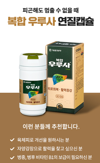 - ์ฃผ์ฑ๋ถ: UDCA + ๋นํ๋ฏผ B๊ตฐ (ํฐ์๋ฏผ, ๋ฆฌ๋ณดํ๋๋น, ํผ๋ฆฌ๋ ์ ๋ฑ)