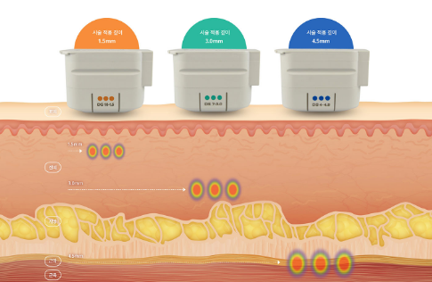- ๊ฐ๋ ฅํ ํผ๋ถ ํ๋ ฅ ์ฆ์ง: ํผ๋ถ ์ ๊น์ ๊ทผ๋ง์ธต(SMAS์ธต)์ ์ง์ ์๋์ง๋ฅผ ์ ๋ฌํ์ฌ ๋์ด์ง ํผ๋ถ๋ฅผ ๋์ด์ฌ๋ฆฌ๊ณ ์ ๋ฐ์ ์ธ ํ๋ ฅ์ ํฅ์ํฉ๋๋ค.