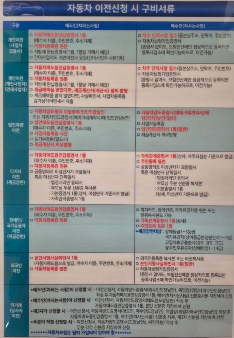 μ₯μ μΈ λλ κ΅κ°μ 곡μλ‘μ μΈκΈ κ°λ©΄ ννμ λ°μ λ±λ‘λ μ°¨λμ λ§€λ§€ν λλ μΌλ° κ±°λμ λλΆμ΄ λͺ κ°μ§ μΆκ° μλ₯λ₯Ό μ€λΉν΄μΌ ν©λλ€. λ§€λμΈκ³Ό λ§€μμΈ κ°κ°μ μ μ₯μμ νμν μλ₯λ₯Ό μμΈν μμλ³ΌκΉμ?
