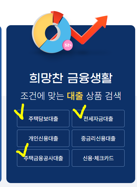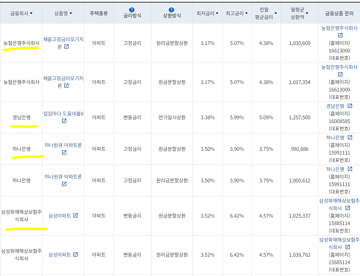 ์ฒซ ๋ฒ์งธ๋ก ์๋ ค๋๋ฆด ๊ณณ์ ๊ธ์ต๊ฐ๋ ์ ์ฌ์ดํธ์ ๋๋ค. ์ด ์ฌ์ดํธ๋ ์ ์ฉ๋์ถ๋ถํฐ , ์ ์ธ๋ค ๊ธ๋์ถ, ์ฃผํ๋ด๋ณด๋์ถ, ์ ์ฉ๋์ถ๋ฑ์ ํญ๋์ ์ํ๋ค์ ํ๋์ ํ์ธํ ์๊ฐ ์๋ ๊ณณ์ด๋ฉฐ ๋ํ ์ฃผํ๋ด๋ณด๋์ถ์ ๋ด๊ฐ ์ผ๋ง๋ฅผ ๋น๋ ค์ผ ํ ์ง ๊ฐ์ ์ค์ ํ๊ณ ๋์ถ๊ธฐํ๋ฑ ์ค์ ํด์ ๊ฒ์ํ๋ฉด ์ด๋ ์ด๋ ํ ์ํ์์ ์ต์ ๊ธ๋ฆฌ, ์ต๊ณ ๊ธ๋ฆฌ, ์ํ๊ท ์ํ์ก, ๊ธ๋ฆฌ๋ฐฉ์์ด ์ด๋ป๊ฒ ๋๋์ง ์ํฉ๋ฐ์ ๋ํ ํ๋์ ๋ณด๊ธฐ ํธํ๊ฒ ์ ๋ฆฌ๊ฐ ๋์ด์์ต๋๋ค. ๊ฐ์ธ์ ์ผ๋ก ์ ๋ ์ฌ๊ธฐ์ ๋ง์ด ๋ณด๊ธฐ๋ ํฉ๋๋ค. ์ด์ ๋ ๊ธ๋ฆฌ๋ฐฉ์์ ๊ณ ์ ๊ธ๋ฆฌ ๋๋ ๋ณ๋๊ธ๋ฆฌ์ธ์ง ๋ณด์ฌ์ค๋ค๋ ์ ์ ๋๋ค.