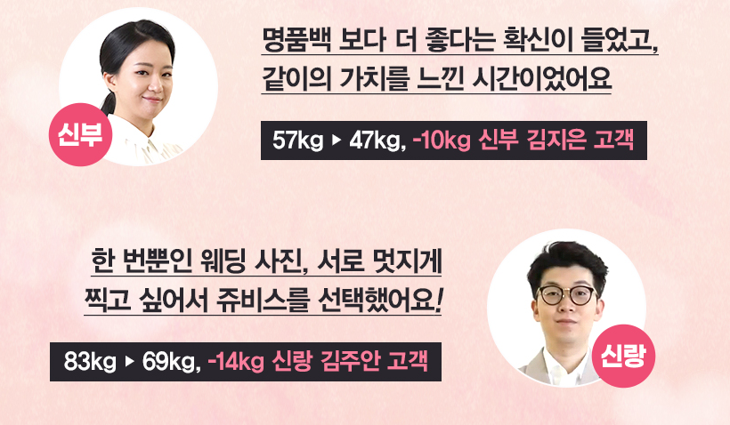 ์ผ๋ฐ์ ์ผ๋ก ์ฅฌ๋น์ค ๋ค์ด์ดํธ ํ๋ก๊ทธ๋จ ์ฐธ์ฌ์๋ค์ ๋ช ์ฃผ ๋ด์ ์ฒด์ค๊ฐ๋์ด๋ ์ฒดํ ๋ณํ๋ฅผ ๊ฒฝํํ๊ธฐ ์์ํ๋ค๊ณ ํฉ๋๋ค. ํ์ง๋ง ๋ชฉํํ๋ ์ฒด์ค์ด๋ ์ฒดํ์ ๋๋ฌํ๊ธฐ๊น์ง๋ ๋ช ๋ฌ์ด ๊ฑธ๋ฆด ์ ์์ต๋๋ค. ๊ตฌ์ฒด์ ์ธ ๊ฒฐ๊ณผ๋ฅผ ์ต ๊ธฐ ์ํด์๋ ์ฅฌ๋น์ค ๋ค์ด์ดํธ ์ผํฐ๋ฅผ ๋ฐฉ๋ฌธํ์ฌ ํ์ธํ๋ ๋ฐฉ๋ฒ๊ณผ ์ธํฐ๋ท ๊ณต์ ํํ์ด์ง์์ ํ์ธํ๋ ๋ฐฉ๋ฒ ๋ฑ์ด ์์ต๋๋ค. ์๋ด์ ํตํด์ ๊ฐ์ธ์ ๋ชฉํํ๋ ์ ์ถฉ๊ณผ ์กฐ๊ฑด์ ๋ง๋ ๋ง์ถคํ ํ๋ก๊ทธ๋จ์ ์ ์๋ฐ์ ์ ์์ผ๋ฉฐ, ์ด๋ฅผ ํตํด ๋ณด๋ค ๊ตฌ์ฒด์ ์ธ ์คํ ๊ฐ๋ฅํ ๋ชฉํ ์ค์ ๊ณผ ์์๊ฒฐ๊ณผ๋ฅผ ์ป์ ์ ์์ต๋๋ค. ๊ณต์ ํ๊ธฐ๋ ์๋ง์ ์ฐ์์ธ๋ค์ ํ๊ธฐ๊ฐ ๋ง๊ณ ์ผ๋ฐ์ฌ๋๋ค์ ํ๊ธฐ๋ ๋ง์ต๋๋ค. ๊ฐ๊ฒฉ๋งํผ ๋ง์กฑ๋๋ ๋๋ค๋ผ๋ ๊ฒ์ ๋๋ค.