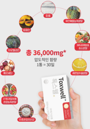 ํ†ก์Šค์›ฐ ๋‹ค์ด์–ดํŠธ์˜ ํšจ๊ณผ์ ์ธ ์„ฑ๋ถ„์œผ๋กœ ๋ถ€์ข…์ œ๊ฑฐ์— ํšจ๊ณผ์ ์ธ ๋‹ค์–‘ํ•œ ์„ฑ๋ถ„์„ ํ•จ์œ ํ•˜๊ณ  ์žˆ์Šต๋‹ˆ๋‹ค.